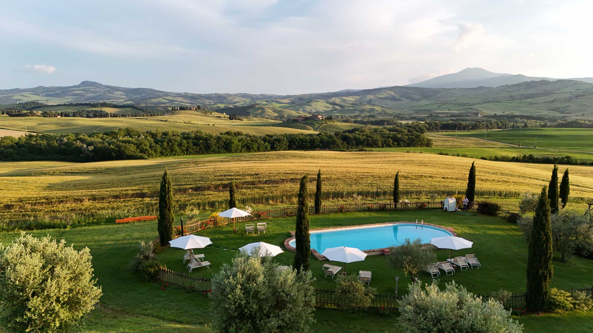 Tucked away in the heart of the Val d’Orcia, our pool provides stunning vistas of gentle hills and golden sunsets.